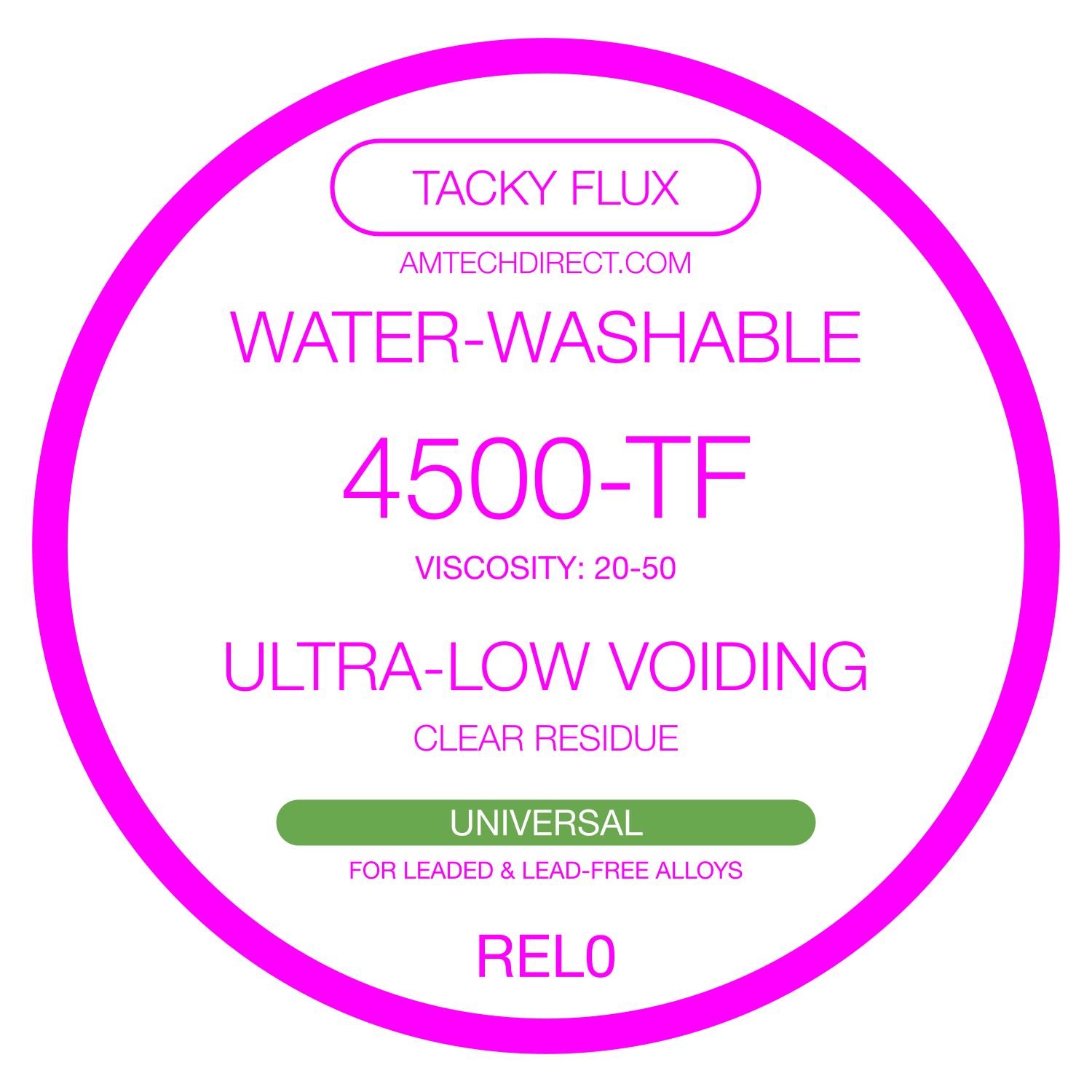 OEM-45L-TF - resin-based more activity soldering flux with industrial performance for OEM manufacturing. Cleans using warm DI-water. This chemistry offers ultra-low voiding, low regulatory burden and maintenance.